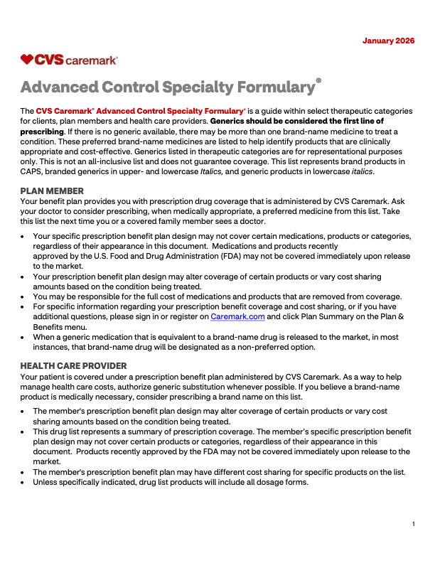 01-2026 CVS Caremark Advanced Control Specialty Formulary Drug List
