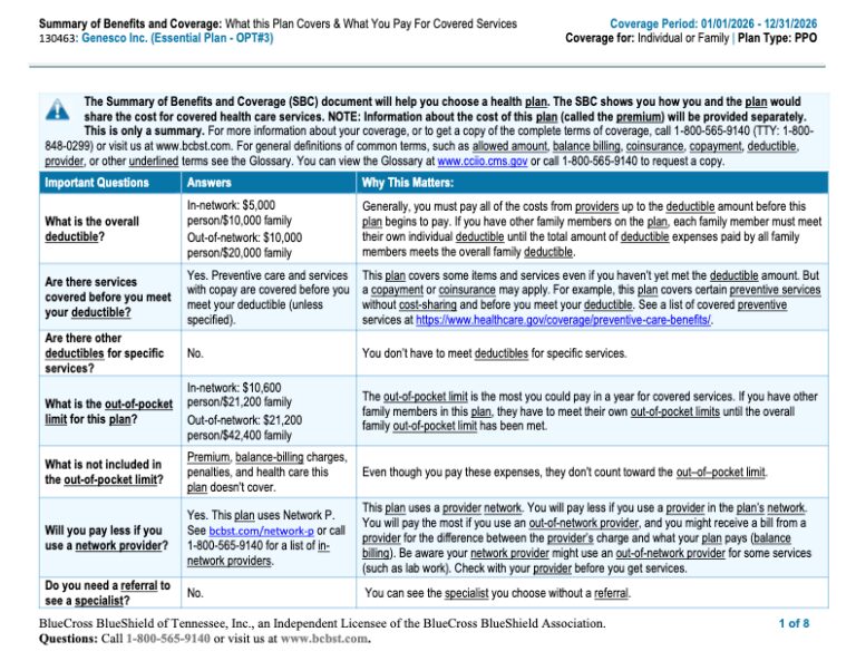 2026 Essential PPO Plan Summary of Benefits and Coverage (SBC)