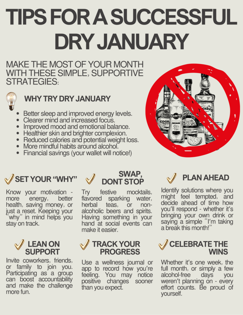 A fresh start to the new year is the perfect opportunity to reset, recharge, and refocus on your wellbeing. That’s why we invite you to join us in taking a mindful pause from alcohol for the month and focus on health, clarity, and positive habits to kick off the new year strong! If you are struggling with alcohol, check our ComPsych EAP for up to 6 free counseling sessions.