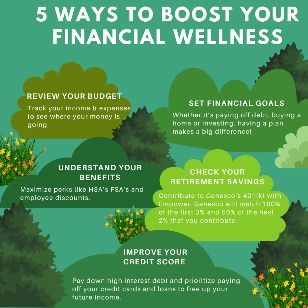 Understanding the basics of budgeting, saving, investing, and retirement planning can help reduce financial stress and improve your overall financial security. This month is a great opportunity to dive in and evaluate your financial health. Take advantage of the wonderful benefits available to you through Genesco.